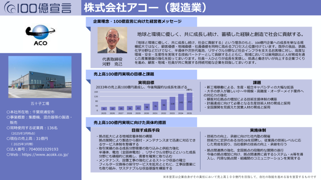 このたび、株式会社アコーは経済産業省・中小企業庁が推進する成長支援プロジェクト「100億宣言」の承認企業として、「100億企業成長ポータル」へ正式に掲載されました。